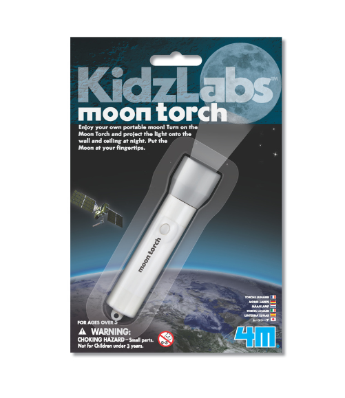 Enjoy your own portable torch and explore light and shadows in a fun way. Turn on the moon torch and project its glow onto walls and ceilings at night.