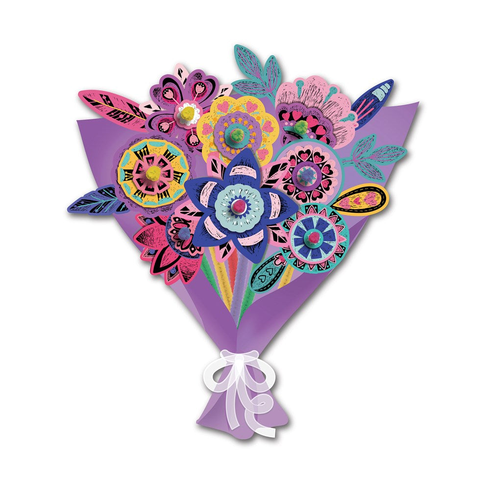 A fun scratch activity kit for kids to make beautiful, flower-themed bouquets. With scratch sheets, pipe cleaners (fuzzy sticks), wrapping paper and ribbon included, by following step-by-step instructions, kids can easily create a completely personalised pretty bouquet.