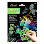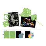 Scratch into a prehistoric world with the Dinosaur Stencil Scratch Art Set – a roaringly fun way to create bold dino designs! Kids can use eight dinosaur-themed stencils to scratch and reveal T-Rexes, Stegosauruses, and more. Each stencil helps bring prehistoric scenes to life with vibrant colours hidden beneath a special black coating.