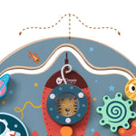 Space-themed busy board with rocket design