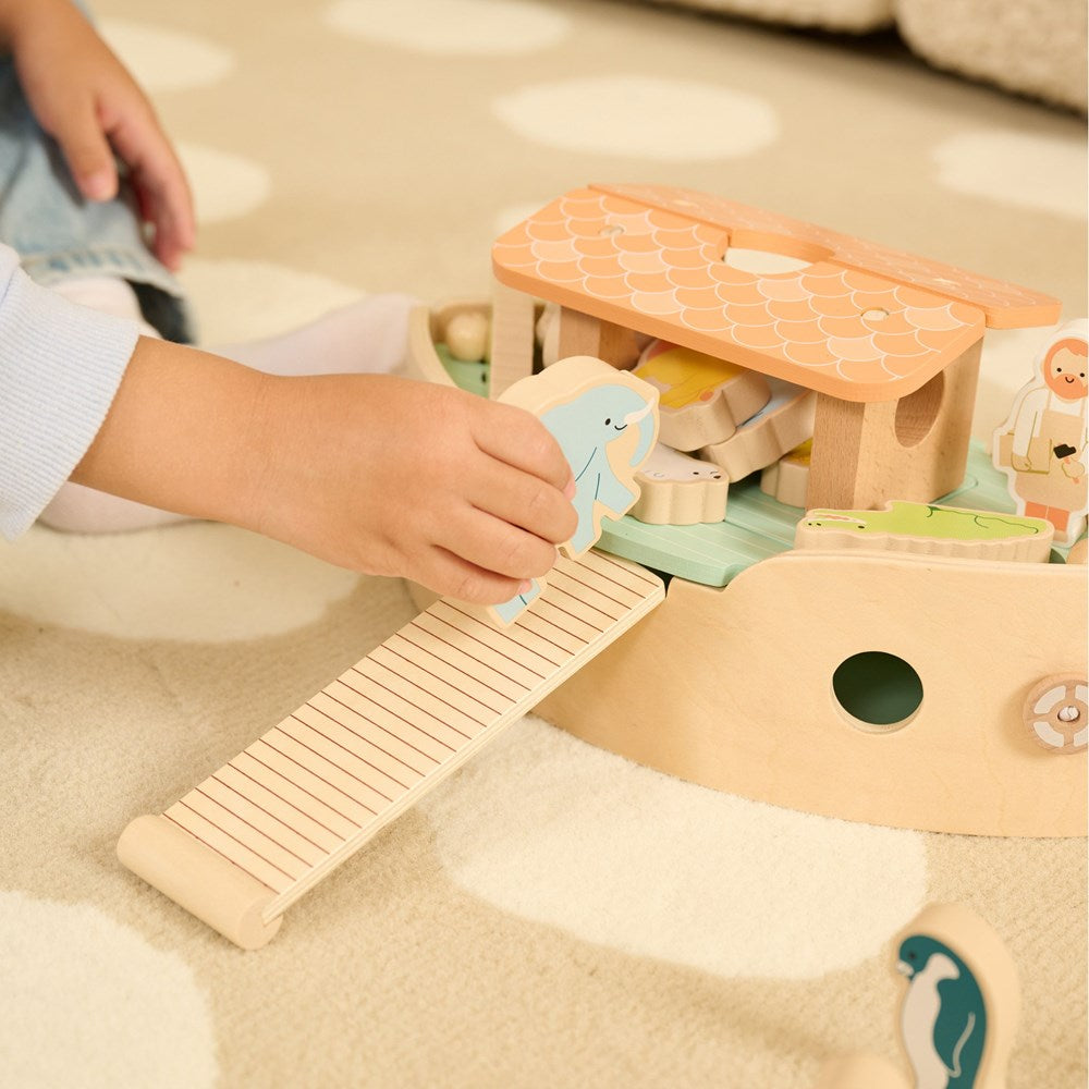 Bring a timeless tale to life with this Classic World Noah’s Ark set— a beautifully crafted wooden play set designed for children aged 18 months and up. With easy-to-assemble parts and charming animal pairs, this set offers hours of imaginative storytelling, construction, and balance play.