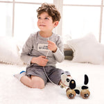 The tail wags and the bell jingles as the dog rolls along, creating delightful movement and sound to encourage walking and coordination. The four paw-printed wheels ensure smooth motion on any surface, helping toddlers build confidence as they pull their puppy through playtime adventures.