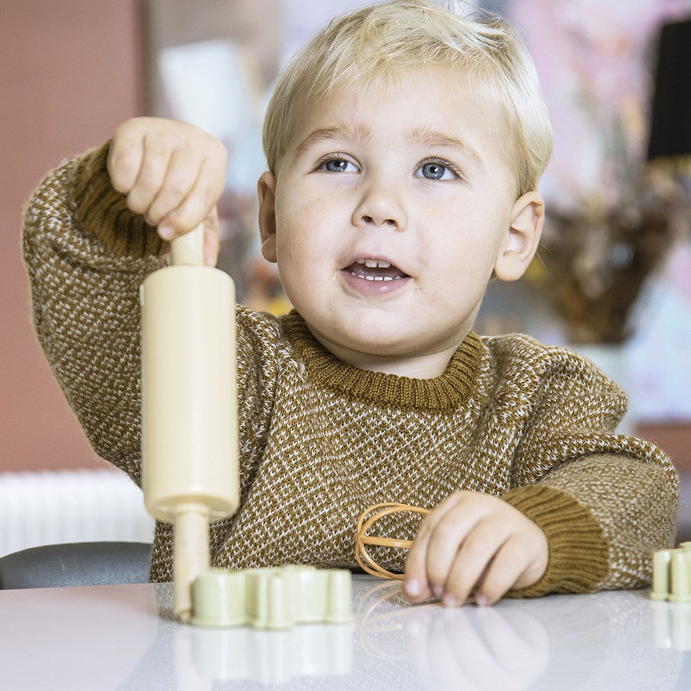 Lovely baking set in delightful trendy colours, made of Nordic Swan Ecolabelled bioplastic. The set is perfect for outdoor and indoor play alike. Learn to make beautiful cakes from dough, modelling clay or sand.