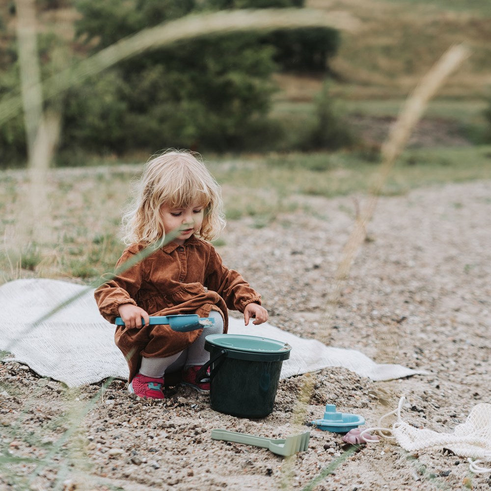 The Bucket Set from Blue Marine Toys, like all other toys from the range, is made from recycled plastic derived from marine gear such as nets, trawls and ropes. At the factory in Hobro, these residual materials are transformed into toys, as using the recycled gear is a preventive action against fishing and marine gear ending in the oceans.