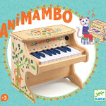 A beautifully illustrated table top Animambo mini piano by Djeco.
