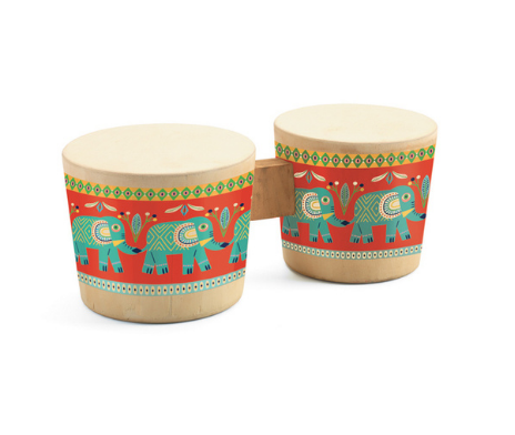Kids love to beat this beautiful bongo drum with elephant patterns.