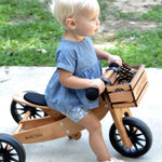 Every toddler loves to transport their treasures. A compact all wood crate is the perfect accessory for any Kinderfeets balance bike or Tiny Tot and Tiny Tot Plus Trike. It's quick and easy to install. Just buckle its faux leather straps to the handle bar and you're on your way.