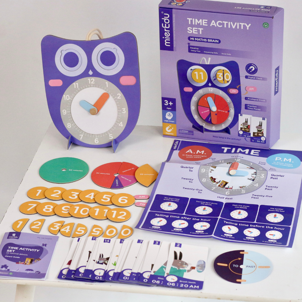 The Time Activity Set is designed to inspire, motivate, and engage children in understanding the relationship between time and numbers. With colourful magnets and playful components like the Omi Owl Clock, kids can explore telling time, sequencing daily routines, and building good habits like punctuality and planning.