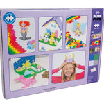 Plus-Plus is perfect for small hands and big ideas. With this box comes hours of fun while stimulating fine motor skills, building puzzles, mosaics, and 3D constructions while mixing play and creativity! The Plus-Plus Learn To Build Super Set set contains everything you need to get starting with Plus-Plus. A Guide Book gives step-by step instructions to build flat mosaics and 3D creations - animals, people, buildings and more! The set includes 700 Pastel color mix pieces, 300 Neon color mix pieces, 50 pieces of Gold, Silver, Flesh and Glow in the Dark each, 4 Baseplates and a Guide Book.