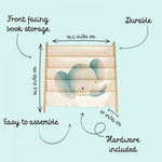 Chewy the elephant's wooden Montessori bookcase is perfect to let children choose freely and keep their books organized.