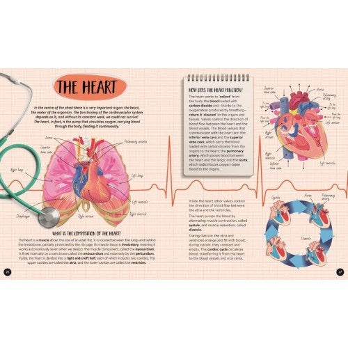 The human body is an extraordinary machine. It allows us to breathe, feed ourselves, run, think, interact with others... and much, much more! On closer inspection, every tiny part of our body is a true microcosm. But what do organs look like? How does an apparatus work? Why does the heart beat? An atlas full of interesting information to answer these and many other questions about our organism!