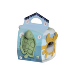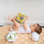 Build your little one's early development skills with this lovely organic fabric cube. in ocean theme.