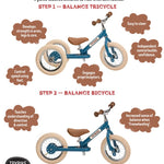 The first 2-in-1 tricycle balance bike made from steel makes learning to ride fun! Trybike Steel teaches children to ride from 18 months of age. The first setting is the low tricycle mode which offers children lots of support. You can easily convert the tricycle to a balance bike so that the next stage of riding starts. With the unique footrest, children learn balance and consequently learn to ride a pedal bike without ever using training wheels.